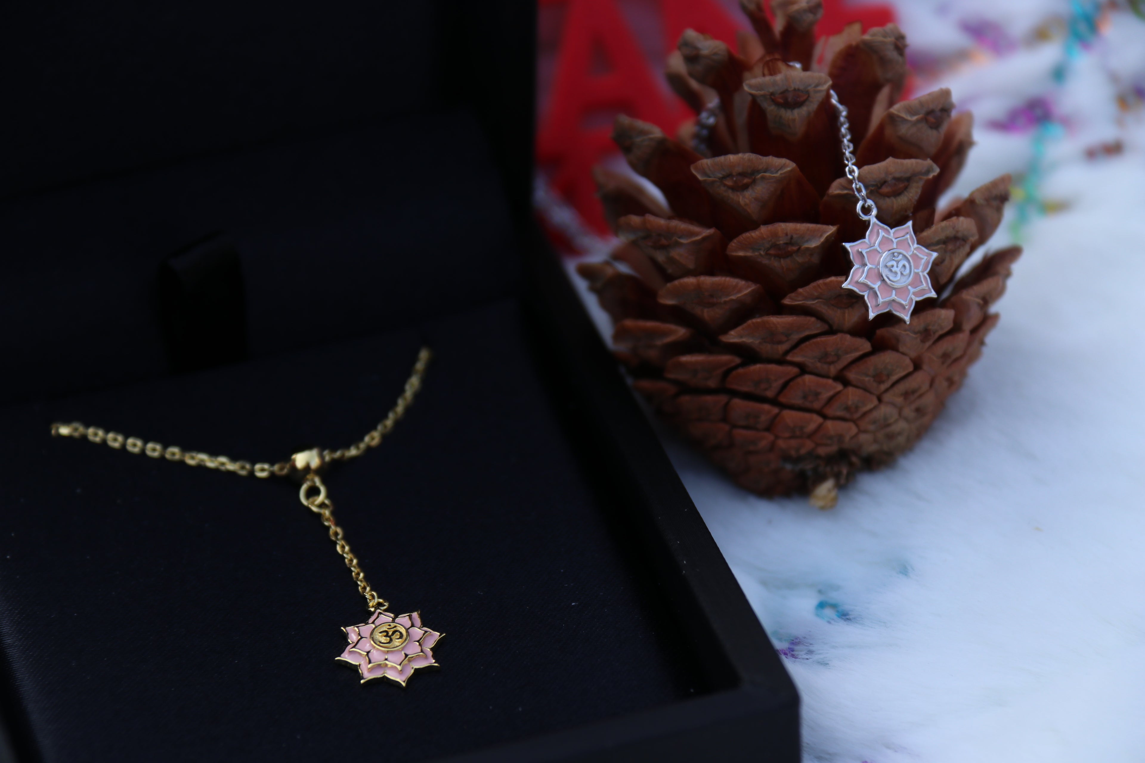 Women's Yoga OM Lotus Pendant Necklace with Adjustable Cross Chain-HEBE
